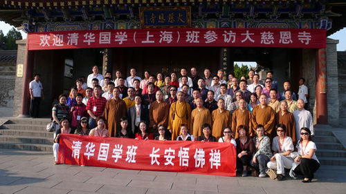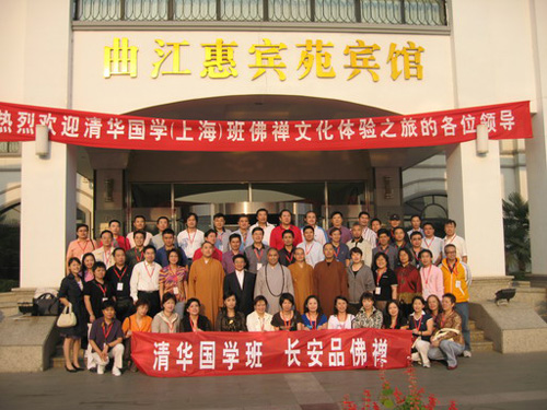 2007年9月22日下午,清华大学国学班70余名学员“长安品禅——长安悟佛禅”主题活动在法相宗祖庭大慈恩寺隆重举行。学院们在大雁塔下同西安地区的高僧大德一起参悟佛禅,体味人生。在本次活动中,长安地区的9位高僧大德作了讲演
