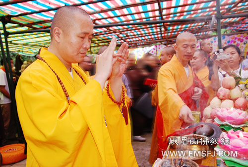 峨眉山佛协在萝峰庵为通孝长老举行入龛仪式