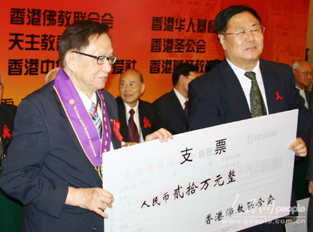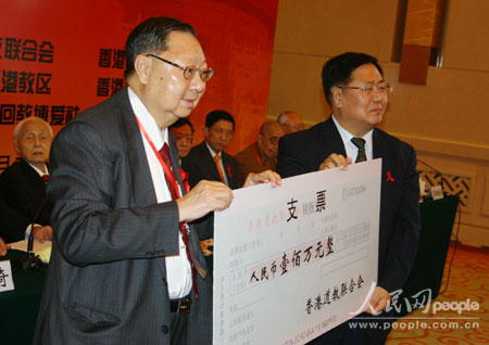 9月28日上午,香港宗教界国庆访京团在北京向中国预防性病艾滋病基金会捐赠港币300余万,用于开展对受艾滋病影响儿童的救助工作。