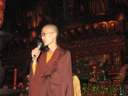 10月7日,江西省庐山东林寺在十一黄金周期间举办的“庐山东林寺佛七”法会功德圆满。下午三时在大雄宝殿举行庄严的解七仪式,并由监院道元法师主持佛七心得交流会。