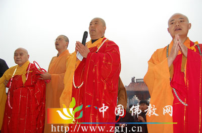 在宝塔开光法会前,正觉寺的监院仁达法师主持放生法会,将数以万计的鱼儿放归正觉寺的放生池中,使鱼儿得以自由遨游。