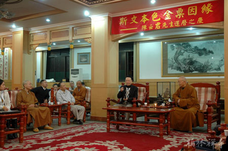 当天晚上,在指月楼客厅进行了题为“斯文本色 金粟因缘——陈云君先生还历之庆”的座谈,与会者均感法喜充满。