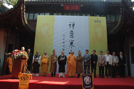 开幕仪式简单而隆重:苏州市相关领导、日本宗教画法学院、日本禅画协会、寒山寺寒山书院学僧、护法居士参加了此次活动。