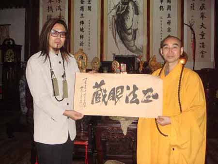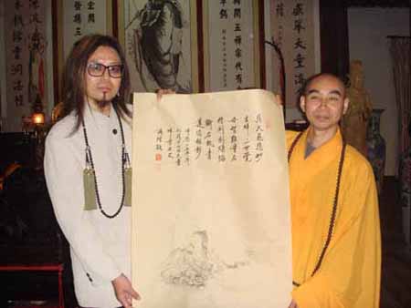 10月17日晚,天童禅寺方丈诚信法师在方丈室接待了日本著名画家七类堂墨吞先生。墨吞先生是明代日本画僧雪舟禅师的第十七代弟子,去年曾拜访天童禅寺。