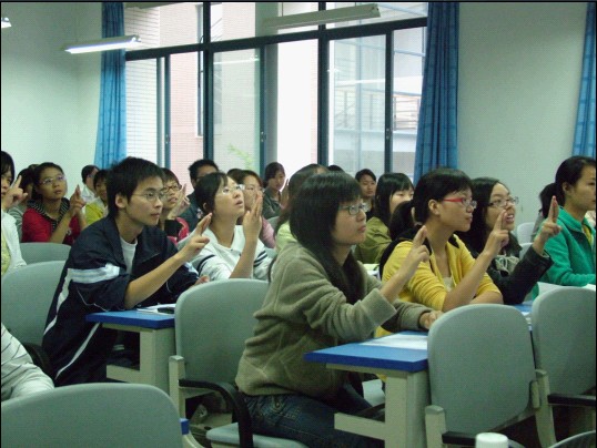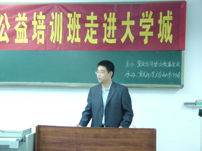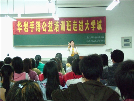 彭劲老师为学员讲课 华岩手语培训班走进重庆大学城