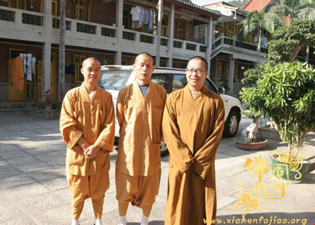10月23日下午3:00福建厦门市白鹿洞寺理心法师、觉观法师为闽南佛学院送去了崭新的僧服,并与在校的全体法师和学僧结缘。