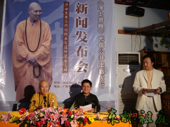 2007年10月10日上午9:30,《净土资粮》光盘公开出版发行的新闻发布会在江西南昌广益缘茶城正式开始。首先由主持人邹卫先生介绍了参加会议的新闻媒体及有关新闻发布会情况。出席此次新闻发布会的媒体如下: 平面媒体有: