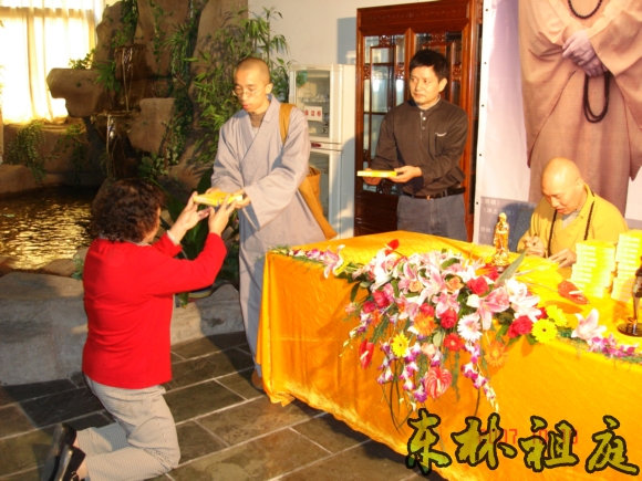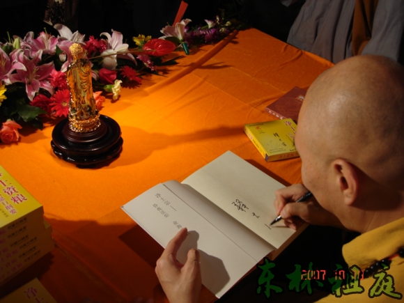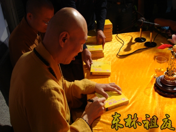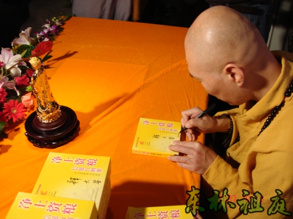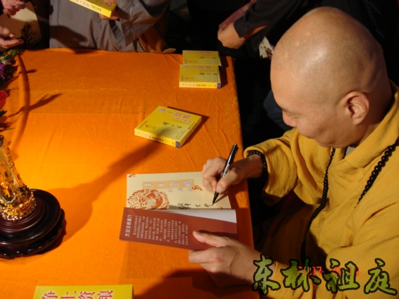 大安法师正在签名送碟。