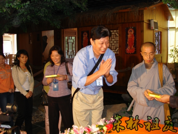 广益缘茶城张文祥总经理代表茶城商会宣布支持东林大佛百元运动。