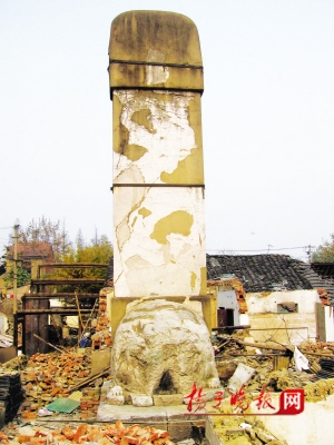 记者了解到,投资10亿人民币的金陵大报恩寺及琉璃宝塔重建项目已经拉开帷幕。昨日,记者来到大报恩寺遗址拆迁工地,一尊被围困在连绵民居中近百年的石碑终于揭开“盖头”,露出了真容。