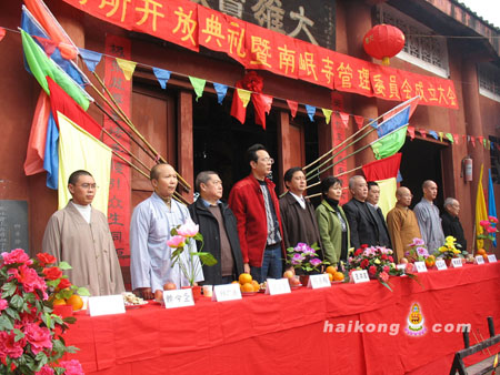 南充市民宗局王洪波局长、西充县委统战部副部长庞莲致辞,西充县民宗局何永明局长宣读开放批文,西充县统战部老干部杨勇为南岷寺授牌授印,西充县佛协副会长德光法师主持开放大会。南充市佛教协会副会长能圆法师,广永法师,南充市佛教协会秘书长周正华,副秘书长照祥法师等出席大会。