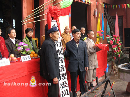 西充县统战部老干部杨勇为南岷寺授牌授印