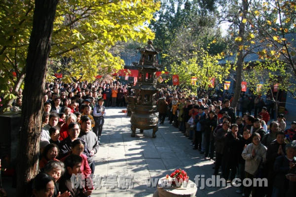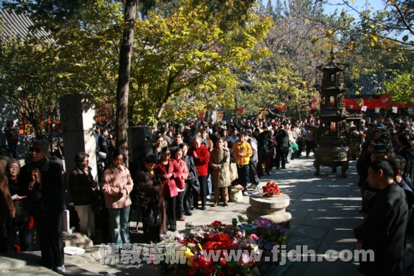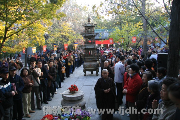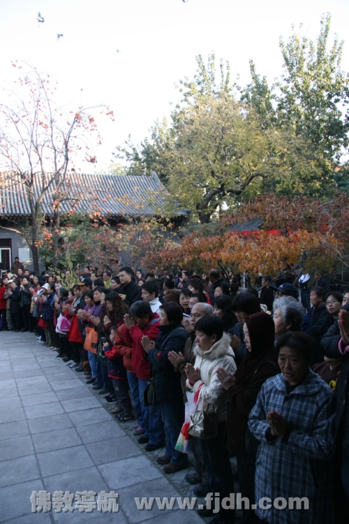 深秋红叶满庭院的古刹通教寺,愈千信众人潮爆满,大雄宝殿、念佛堂、五观堂以及院子全部坐满听法的信众。法音宣流,利生广大。