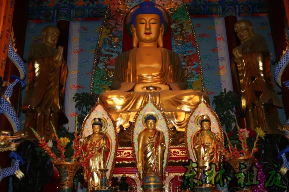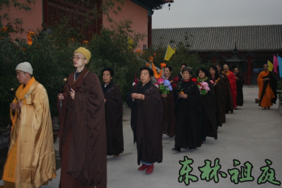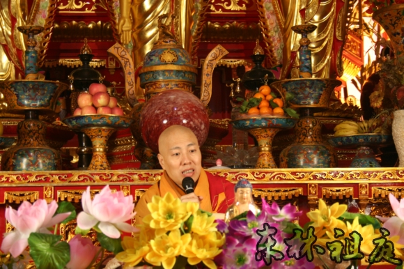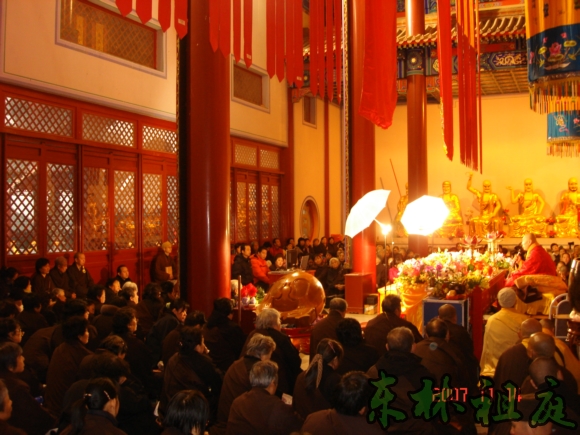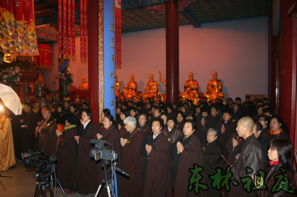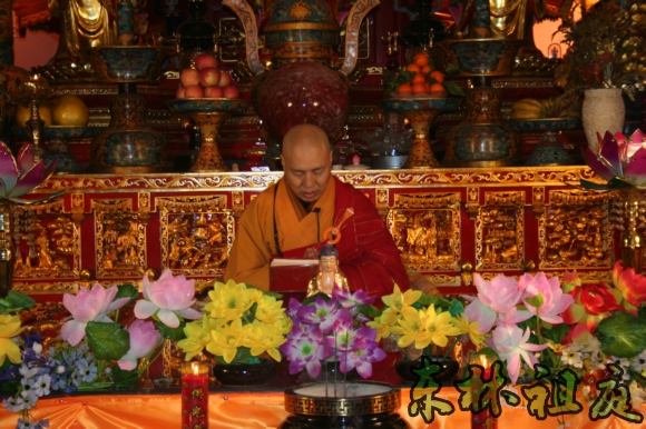 大雄宝殿。 迎请法师。 法师拈香。 法师升座。 信众在恭迎法师。