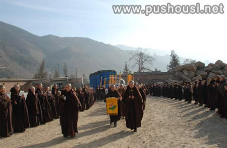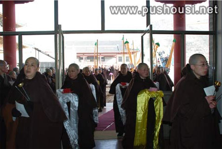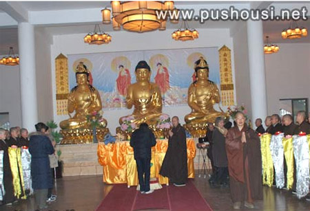 2008年1月8日,山西省五台山普寿寺念佛堂隆重举行西方三圣像迎请仪式。