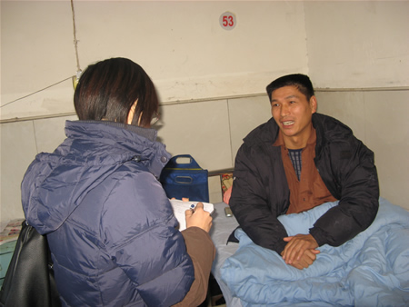 ![]() 慈善门诊的工作人员看望董连文并了解一些情况