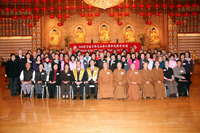为感谢辛苦授课的老师,人间学院于典礼圆满大合影后,在滴水坊举行与大众结缘的喜悦,而佛光合唱团更现唱「甘露歌」,充份展现茶话会「众缘和谐」的温馨气息。图:多伦多人间学院授课老师、人间佛教读书会召集人、国际佛光会多伦多协会理事、干部于开学典礼后合影,为2008年的学习留下美好的开端。