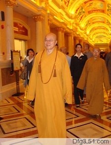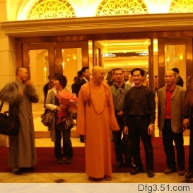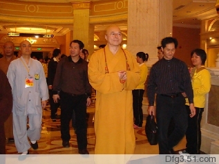 海涛法师在阳江佛弟子的陪同下步入酒店