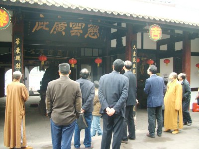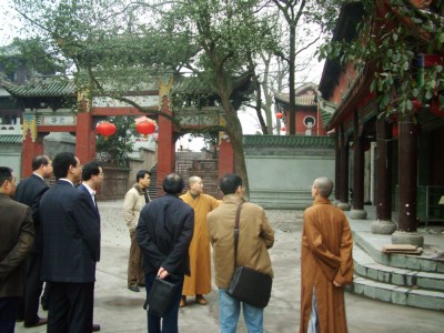 中国佛网讯 2008年3月5日上午,中共重庆市南岸区统战部范立新部长,南岸区旅游局周旭局长,九龙坡区民宗委张志敏局长等一行7人,前往重庆华岩寺参观访问,受到华岩方丈道坚法师的热情接待。