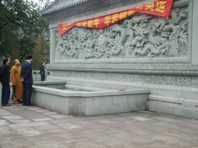参观华岩广场上雕工精细的“九龙壁”