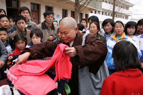 一位法师在太湖县北中中学举行的捐赠仪式现场中致辞说:“我今天不是以出家人的身份,更多的是以这地方的儿子的身份站在这里。中国虽然地大物博,物产丰富,但是也有着占世界四分之一的众多人口。政府要让这么多人吃饱饭,方方面面做了很多事,非常了不起。而在社会中,也一些人发愿透由自己的努力协助政府为大家服务,基金会就是干这些事情的一个服务机构。”