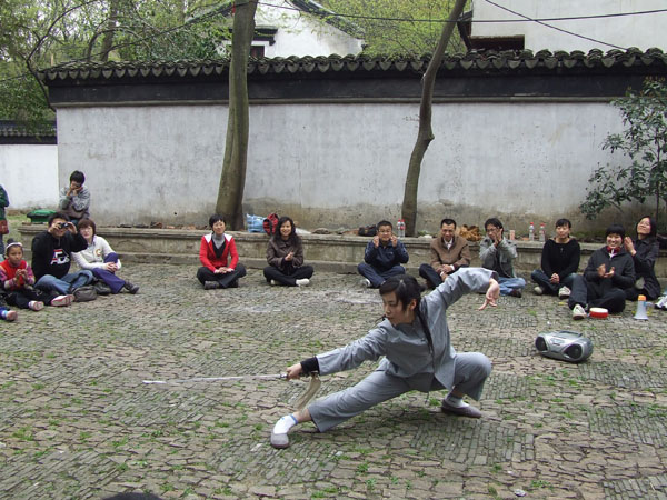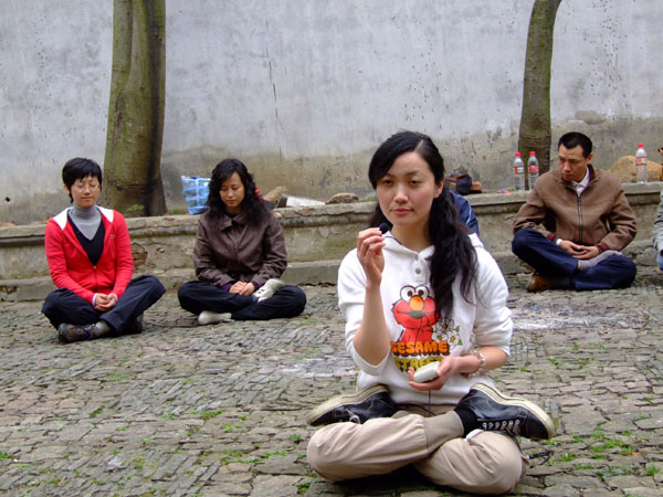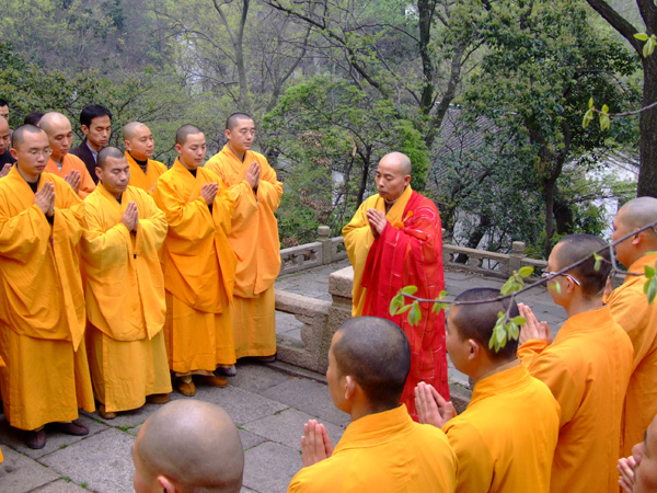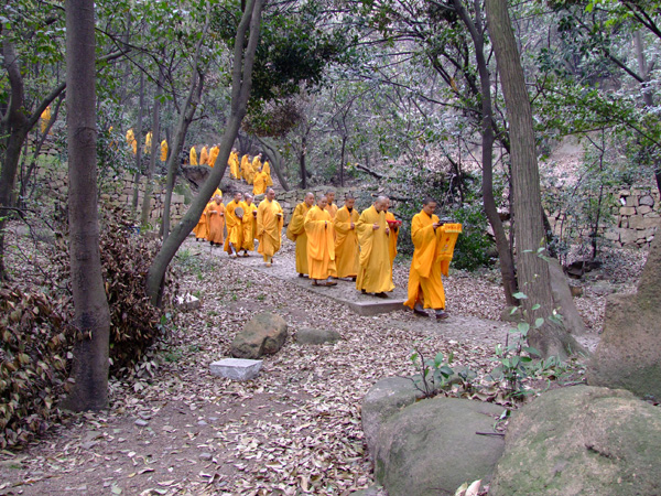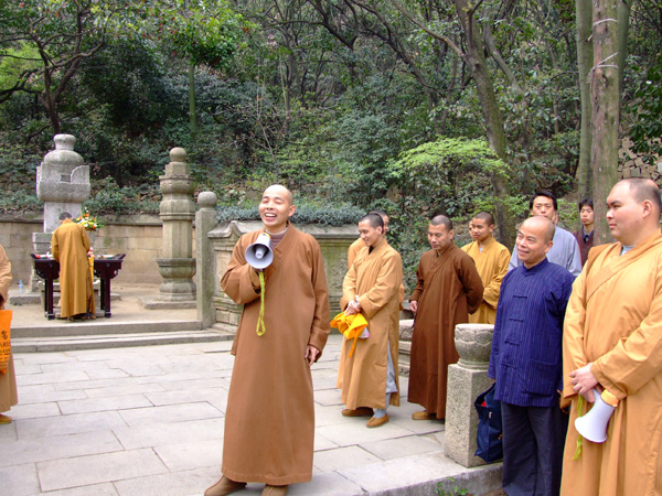 2008年4月4日,江苏省苏州市西园寺青年佛学进修班学员在西园寺法师带领下,前往花山塔林祭祖。