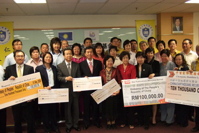 在仪式开始前,全体人员为四川地震灾区遇难民众默哀一分钟。之后,程永华大使发表讲话,代表中国政府和人民对马华公会和马华人捐款协助救灾表示感谢。程大使表示,此次四川地震灾害范围广,给中国大面积地区造成严重损害,但破坏不了中国政府和人民抗震救灾、重建家园的决心。马华公会和广大华人的捐款行动体现了对中国和中国人民的友好感情,中国大使馆将快速将这份情谊转达灾区人民,将捐款转到救灾前线。