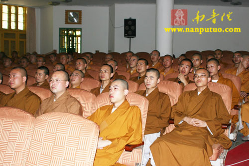 5月12日下午两点,闽南佛学院男众部在教务长传明法师和教导长达源法师以及各班班主任的组织和带领下,在南普陀寺讲堂观看了“祥云绕海西”——奥运圣火在厦门站传递的实况转播。