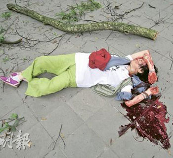 到都江堰一间佛寺做志愿者的港妇潘月荷,疑被倒塌的横梁打中头部,当场大量出血昏迷,拆腾12小时才被送入医院手术室,幸最终保住性命。