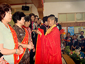 在表扬大会上,监寺永胜法师为模范义工妈妈们披上彩带,感谢义工妈妈任劳任怨的付出。永胜法师开示浴佛的意义,希望藉由著浴佛的功德来净化自己的烦恼尘垢;转五浊恶世为清净的净土;导邪曲人心为善良菩提。并勉励义工菩萨充实义工知能,本著工作即道场的理念,发心发愿展现服务热忱进而提升心灵层次。