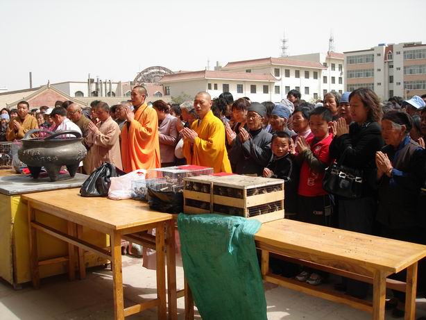 5月3日下午,在理方法师的主持下,鸠摩罗什寺隆重举行了放生法会,法师、居士约200多人参加了法会。