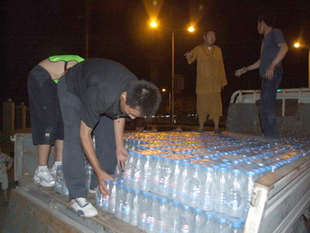 陕西省西安市护国道安寺开展抗震救灾献爱心灾区行活动,经过几天的紧张筹备工作,护国道安寺住持宽严法师携全体爱心大使于2008年5月16日晚将筹备的灾区所需物品装运,并于5月17日中午2点从西安出发奔赴灾区。