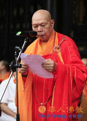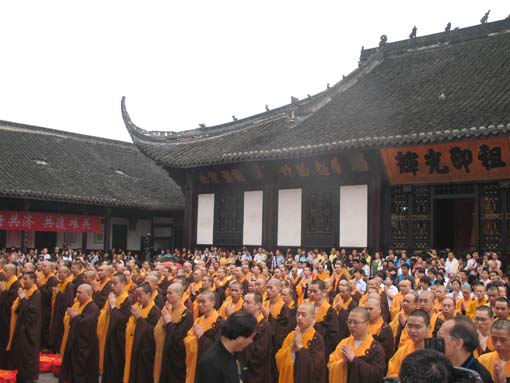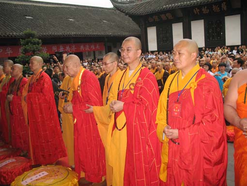 中国佛协会长一诚长老,副会长兼秘书长学诚大和尚,副会长刀述仁、明生、戒忍、觉醒等,及来自全国各省、直辖市的佛教代表同成都数千信众一同为灾区人民祈福。