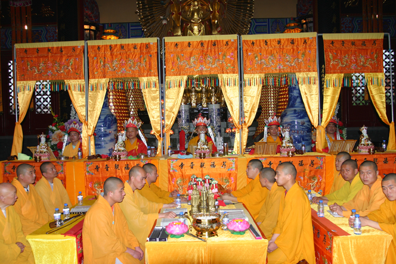 2008年5月19日,第四届水陆空大法会在天津荐福观音寺开坛。百位比丘比丘尼法师分坛主法。此次法会专门在往生堂和延寿堂敬立“为四川汶川地震遇难同胞往生莲位”和“为汶川地震灾民消灾吉祥禄位”晚上举行了五大士瑜伽焰口施放法会。5月18日,还举行了净坛和补经仪式。