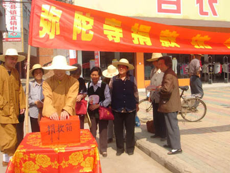 2008年5月16日,湖北省随州市弥陀寺僧众在演新法师带领下,积极为四川地震灾区捐款。在当日的捐款活动中,弥陀寺僧众为灾区捐款3000元,在随后的两天中,又通过有关部门向灾区捐款2000元,截止目前,该寺僧众已为灾区捐款共计5000元。
