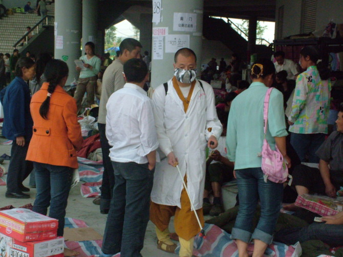 据悉,此次施粥活动中,参与的出家人甚多,做为出家人,他们也义不容辞的加入到救灾队伍中去,对灾区群众开展施粥、医疗诊治、分发中药口罩并救治受伤孩童等救援活动。并且,道坚法师亲自带领华岩寺僧众对灾区同胞驻留的场所进行消毒。