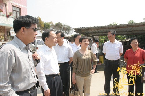 今天上午9时40分,在市民宗局党组书记陈建德、局长曾文瑛、副局长蔡永华等的陪同下,厦门市市委常委、副市长詹沧洲与市人大代表等一行30多人赴我市前埔村磨心山,为妙释寺易地重建工作进行实地考察。