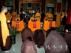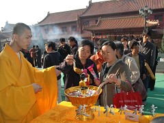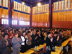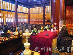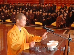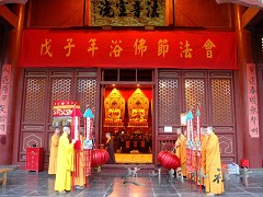 佛诞日到来前的三天(5月09~11日),寺院为数百名在家居士传授了菩萨戒。12日早课时,在万佛楼举行了隆重的浴佛仪式,上午并举行了祝圣普佛和浴佛大供。中午在万佛楼为大众传授三皈五戒,浴佛节法会至此圆满结束。