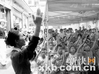 整个会场此时一片沉寂。权少强擦着眼泪站到了一边。副镇长蒋佩华对家长说,今天我们和孩子们过最后的儿童节,缅怀我们的思念,慰问家长受伤的心灵。现在,四川省有关部门已经对学校的倒塌建筑进行了取样,相信一定会给家长一个解释。现在我们还要鼓起勇气,继续生活。他先向遇难学生家长三鞠躬,然后又带领大家向学生遗像三鞠躬。
