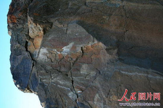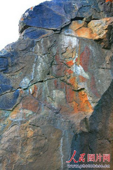 新疆青河县三道海子景区惊现彩色佛像岩画