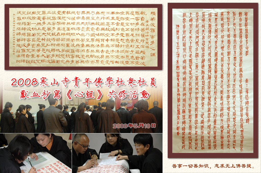 寒山寺青年佛学社抄写《般若波罗密多心经》(血经)共修活动于5月10日在寒山寺青年佛学社共修室隆重举行并圆满成功。