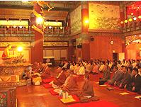 中国台湾国际佛光会中华总会总会长心定法师应济州岛药泉寺的邀请,于2008年6月25晚上7点在韩国济州药泉寺,为西归浦佛教大学的师生暨信徒作“因缘果报”讲座,梵呗最高代表曹溪宗鱼丈东州元明法师、药泉寺住持古奉法师、副住持性圆法师、西归浦佛教大学校长玄守彦、优檀波罗儿童合唱团团长洪恩珠及诸位法师、信徒等四部大众近600人参加。