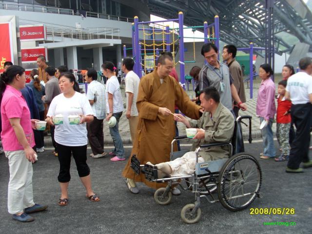 2008年5月27日:应绵阳市救灾指挥中心要求,为支援灾区重建,道坚法师紧急组织10万只粮袋送达灾区第一线,帮助灾民生产自救,抢收夏粮。