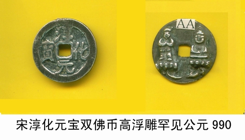 接着美国《珍藏》杂志1998年5月号上透露:中国出土宋代淳化年间纯金质佛币。