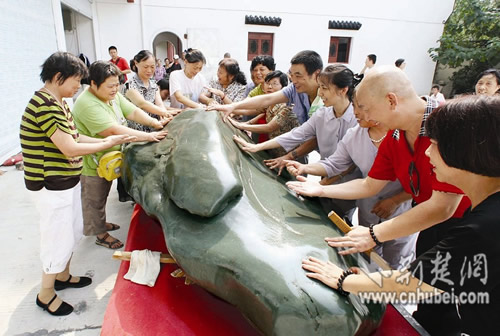 在落地仪式上,归元禅寺方丈隆印法师表示,佛教传入中国以来,佛教文化一直与玉文化交融贯通,形成了丰富的文化内涵。归元禅寺此次幸得瑰宝,将聘请10位顶尖的雕刻大师度身设计成佛像,在即将兴建的圆通阁内供奉。武汉市民有望在3年后看到这尊难得的玉石佛像。