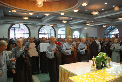 佛陀告诉我们说:“诸供养中,法供养最。”祈愿老和尚您“无量光、无量寿,久住世间,为众生做大依怙”。不过做为小众们,弟子们以为,为大众僧服务值劳是己任,所以要请老和尚师父和大众师父们允许小众弟子们先行告退,弟子们该下大寮了。阿弥陀佛!