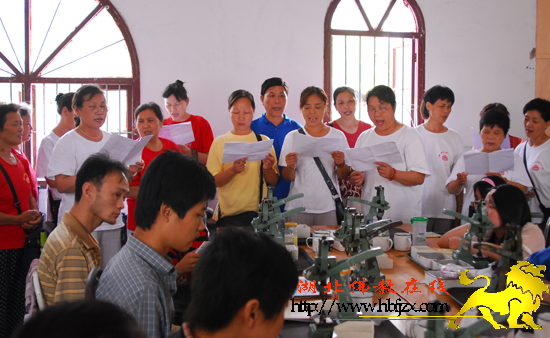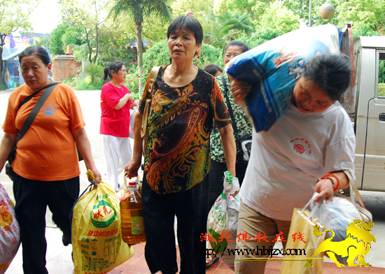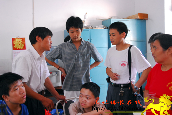 闻知周校长的困境后,正慈会长委托黄石居士修学委员会前来慰问。这些居士不但为志强残疾人技艺培训学校的学员带来了物品,更为他们送上了精神食粮——《弟子规》和部分佛教光碟。他们在现场先为学员们供养了一曲《扫心地》的佛教歌曲,随后又由张桂芳居士带领大家诵读了《弟子规》全文,最后,居士们又带领着学员一道高歌《观音灵感歌》。在令人倍感温馨的歌声中,那些平生从未听闻过佛法的学员们,竟然都双手合十跟着学唱,场面令人感动。