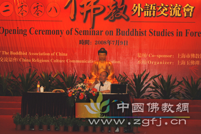 9日晚,上海外国语大学高级翻译学院翻译研究所所长谢天振、华东师范大学外语学院院长、教授张春柏为各位与会法师授课。在座法师聚精会神、全神贯注地听专家讲授翻译技巧,并表示受益匪浅。