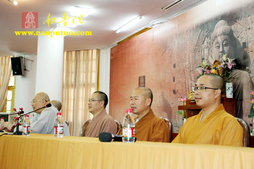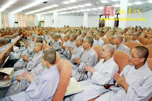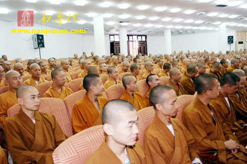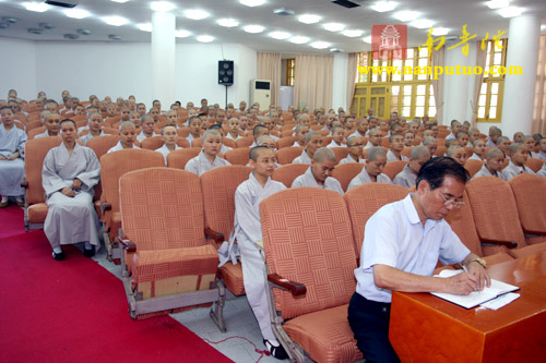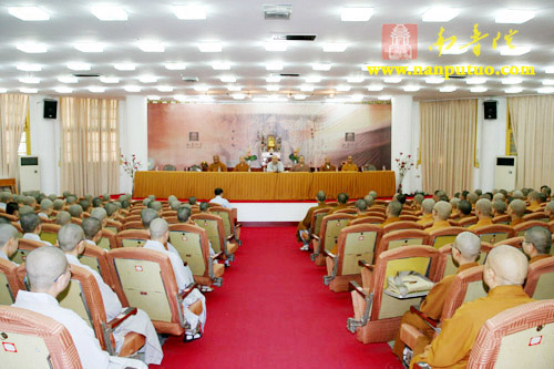 7月4日上午9时,闽南佛学院2008年暑假放假大会于南普陀寺讲堂召开。闽院院长圣辉大和尚、常务副院长界象法师、副院长法源法师、院长助理兼教务长传明法师、院长助理兼办公室主任净心法师、教导长达源法师等在主席台上就座。大会由界象法师主持。