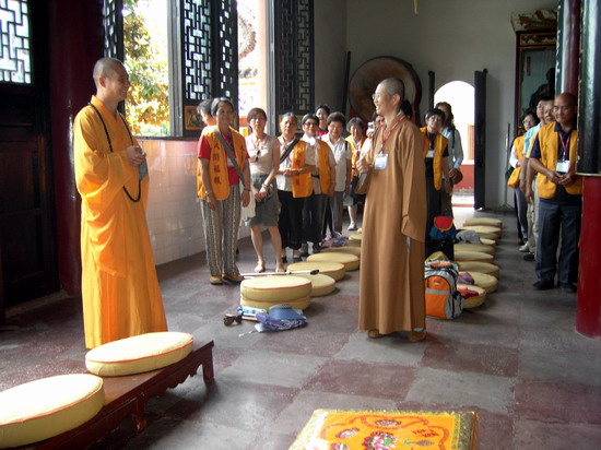 宽容法师为台湾佛光山朝圣团讲解三祖寺在禅宗历史上的重要地位